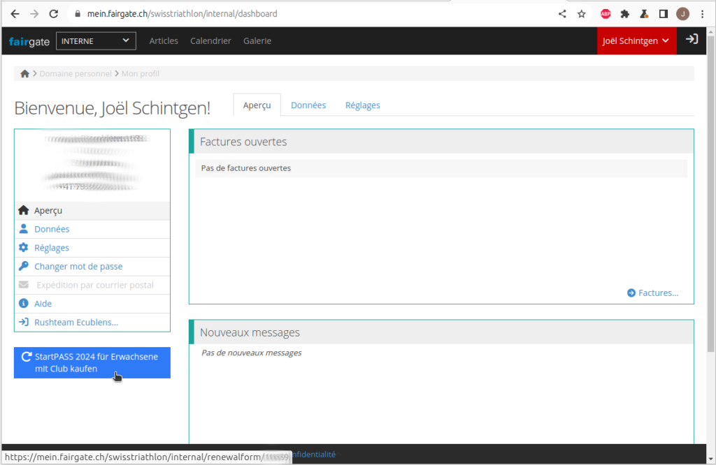 Tu vas recevoir un email avec un lien, pui tu dois définir un mot de passe. Une fois loggué, il faut cliquer sur “StartPASS 2024 für Erwachsene mit Club kaufen”.